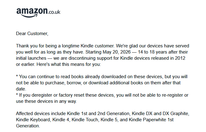 This is a huge blow to any Kindle owner. A lot of owners I know personally use their Kindles to borrow books from the library app, Libby. By locking customers out of this app Kindle are basically making their devices useless.